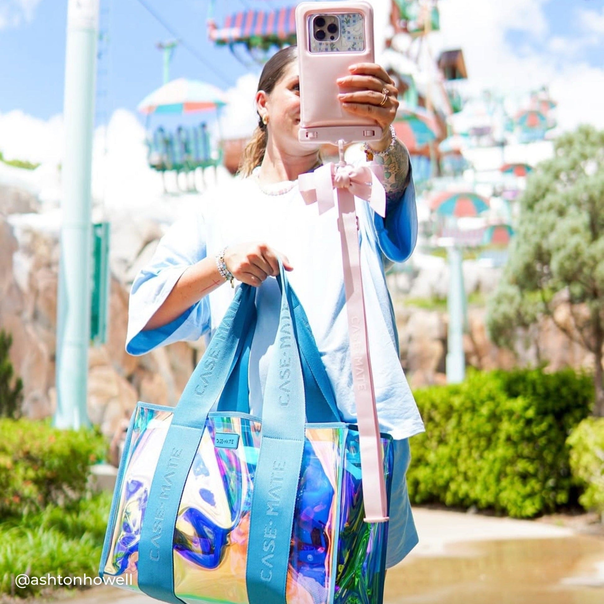 Spacious yet lightweight, our Jelly Tote is perfect for everything from errands and work days to beach trips and travel. Fold it flat to pack as an extra bag, or use it as your carry-on with plenty of space for your laptop, makeup bag, shoes, water bottle, and more. The easy-to-clean material handles coffee spills effortlessly, and the luxurious extra-wide straps keep things comfortable, no matter how much you overpack. Organize your phone and smaller belongings in the water-resistant phone pouch and attach it to the key leash so they’re always within reach. Fold it or fill it— this tote is ready to go when you are.