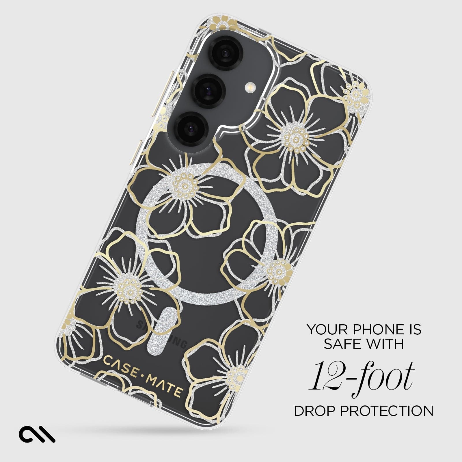 Beautiful florals are in the palm of your hand with the breathtaking Floral Gems Phone Case for Galaxy S25! This classic case stands out with a shimmering floral design and gemstone accents. We know how much you love your phone, so feel confident knowing it’s safe with 12-foot drop protection.