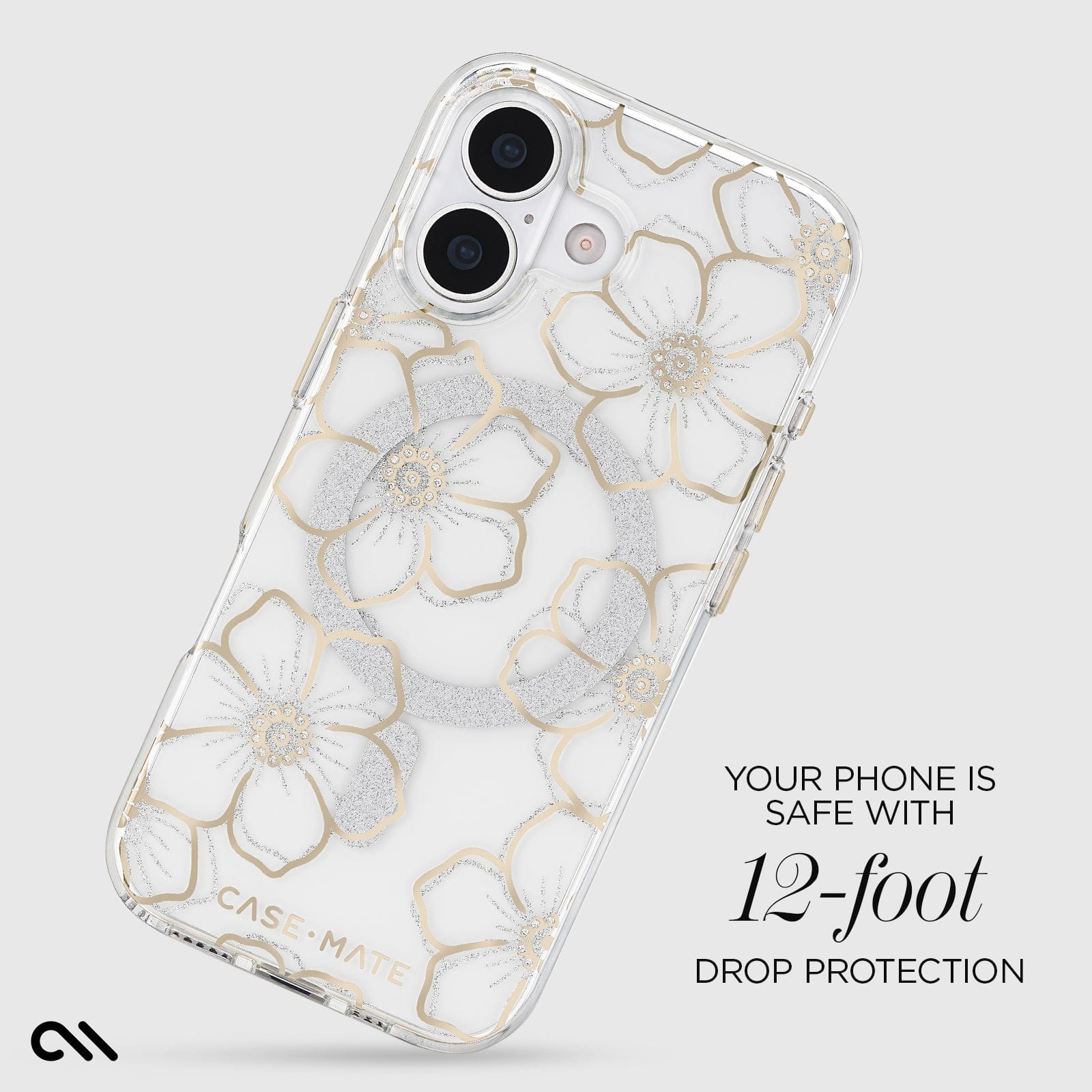 Beautiful florals are in the palm of your hand with the Floral Gems MagSafe Phone Case for the iPhone 17! This classic case stands out with a shimmering floral design and gemstone accents, while strong built-in magnets allow for easy MagSafe accessorizing and charging. We know how much you love your phone, so feel confident knowing it’s safe with 12-foot drop protection.