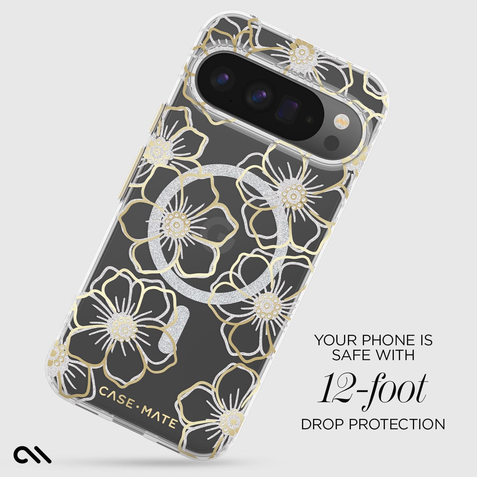 Beautiful florals are in the palm of your hand with the Floral Gems Phone Case for the Pixel 10 Pro XL! This classic case stands out with a shimmering floral design and gemstone accents. Accidents happen, so protect your phone with a 12-foot drop protection while wirelessly charging your phone.