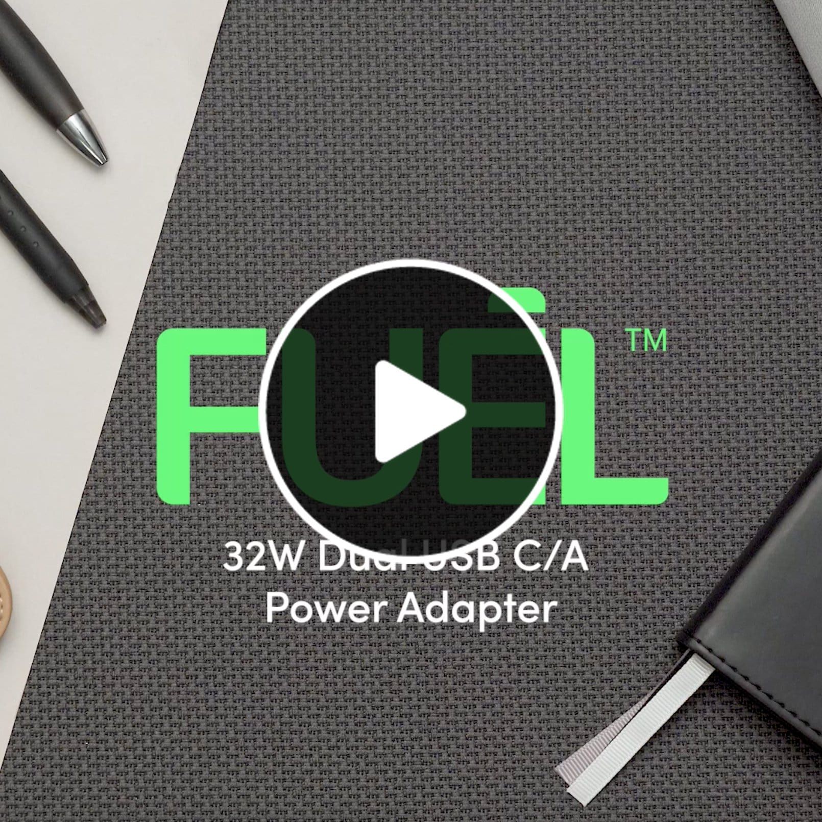 The FUEL 32W Wall Charger provides you with ultra-fast charging for Apple and Android devices. Equipped with USB-A 12W and USB-C 20W ports, you can charge two devices at the same time for ultimate convenience on-the-go. The Smart Power Regulator automatically optimizes output to safely charge your devices.