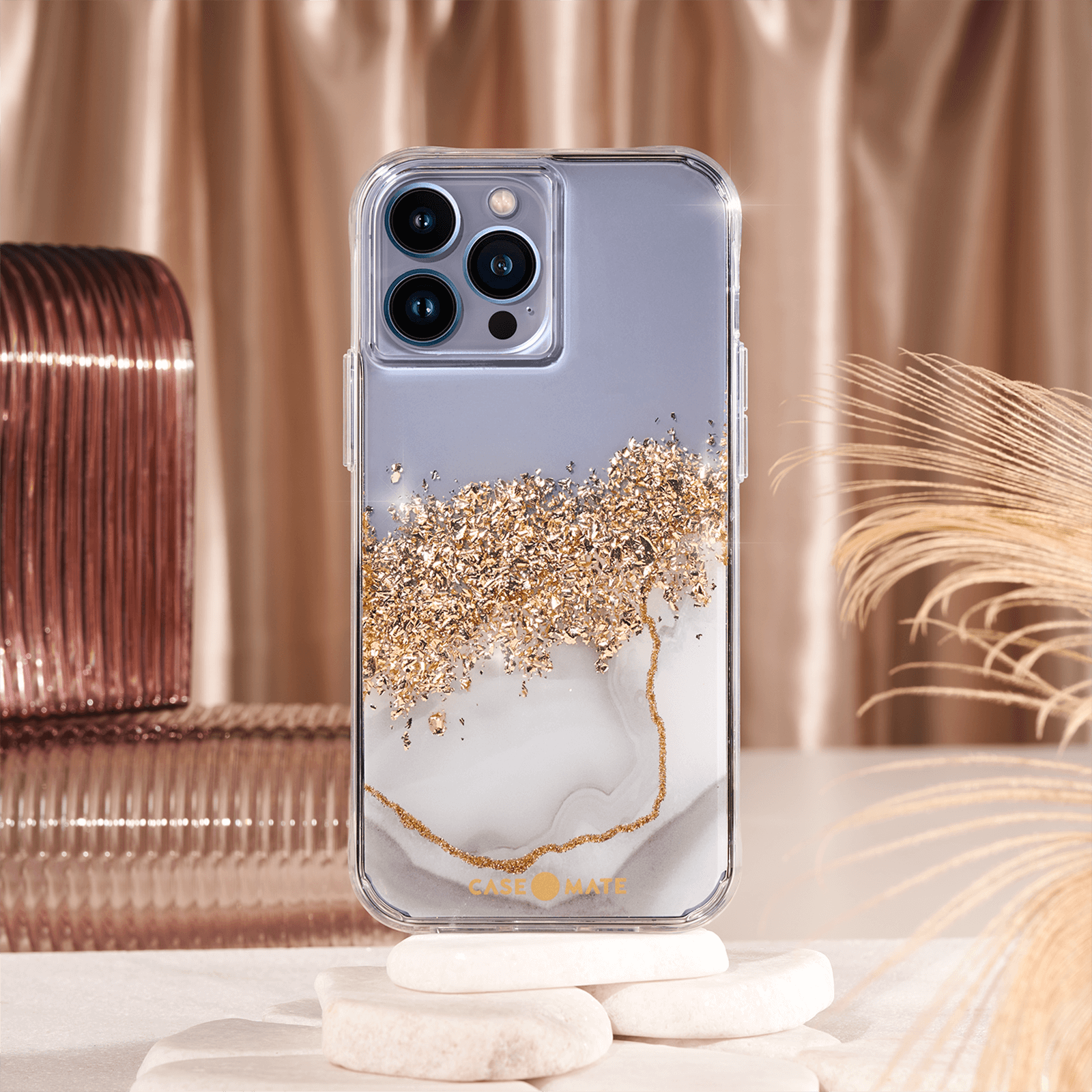 The Karat Marble phone case for iPhone 14 Pro Max is crafted with standard certified recycled materials, creating less demand for limited resources. The semi-opaque marble design with gold karat accents lets the natural beauty of your device shine through. All that and 10 foot drop protection- this case is sustainable, durable, with a hint of luxury.