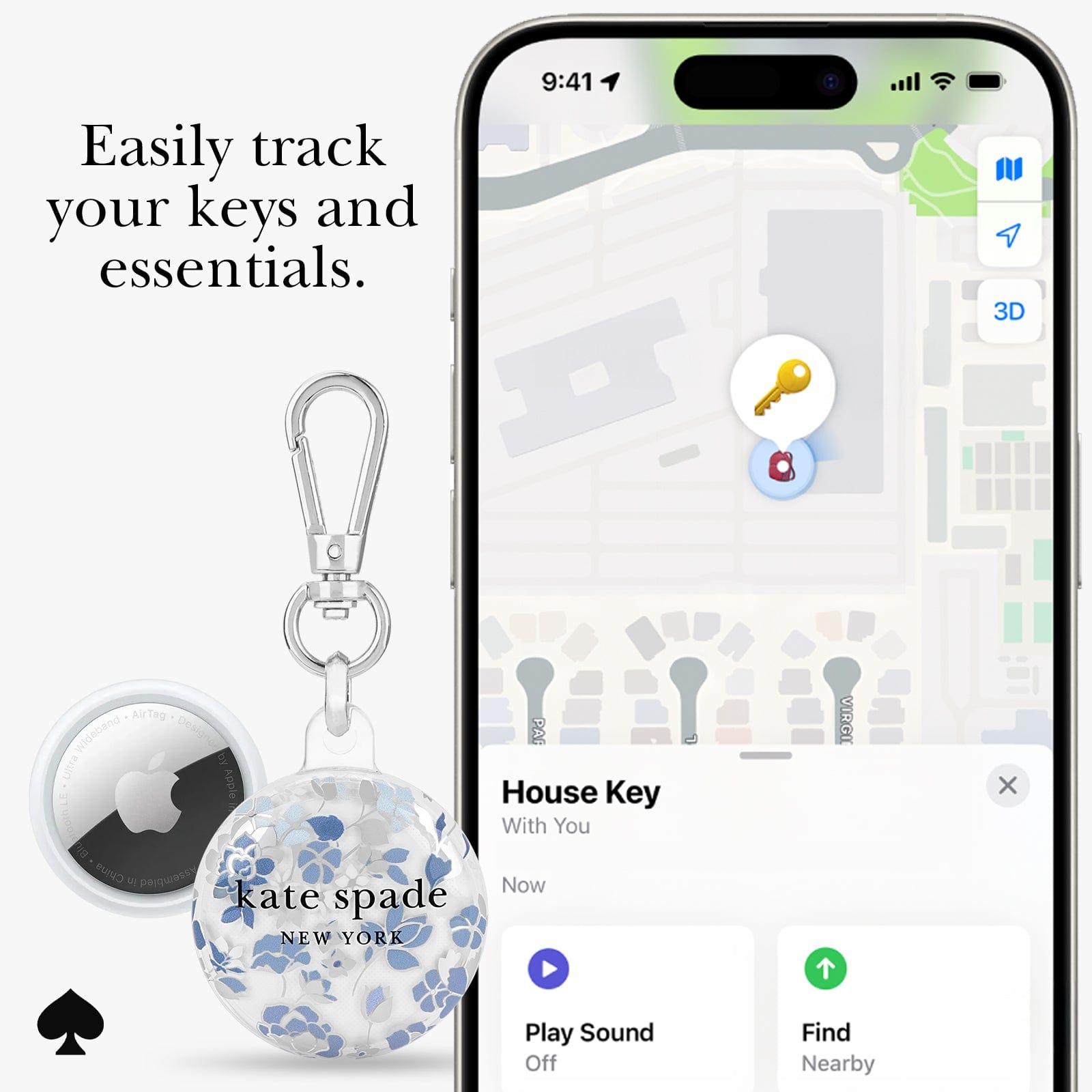 Protect and personalize your Apple AirTag with a sleek and stylish kate spade new york Protective AirTag Case. The design's precision fit allows you to easily insert and remove your AirTag and attach your AirTag to your keys, luggage, purses, and anything else you want to keep track of. Stay stylish while tracking your belongings with this signature kate spade new york design!