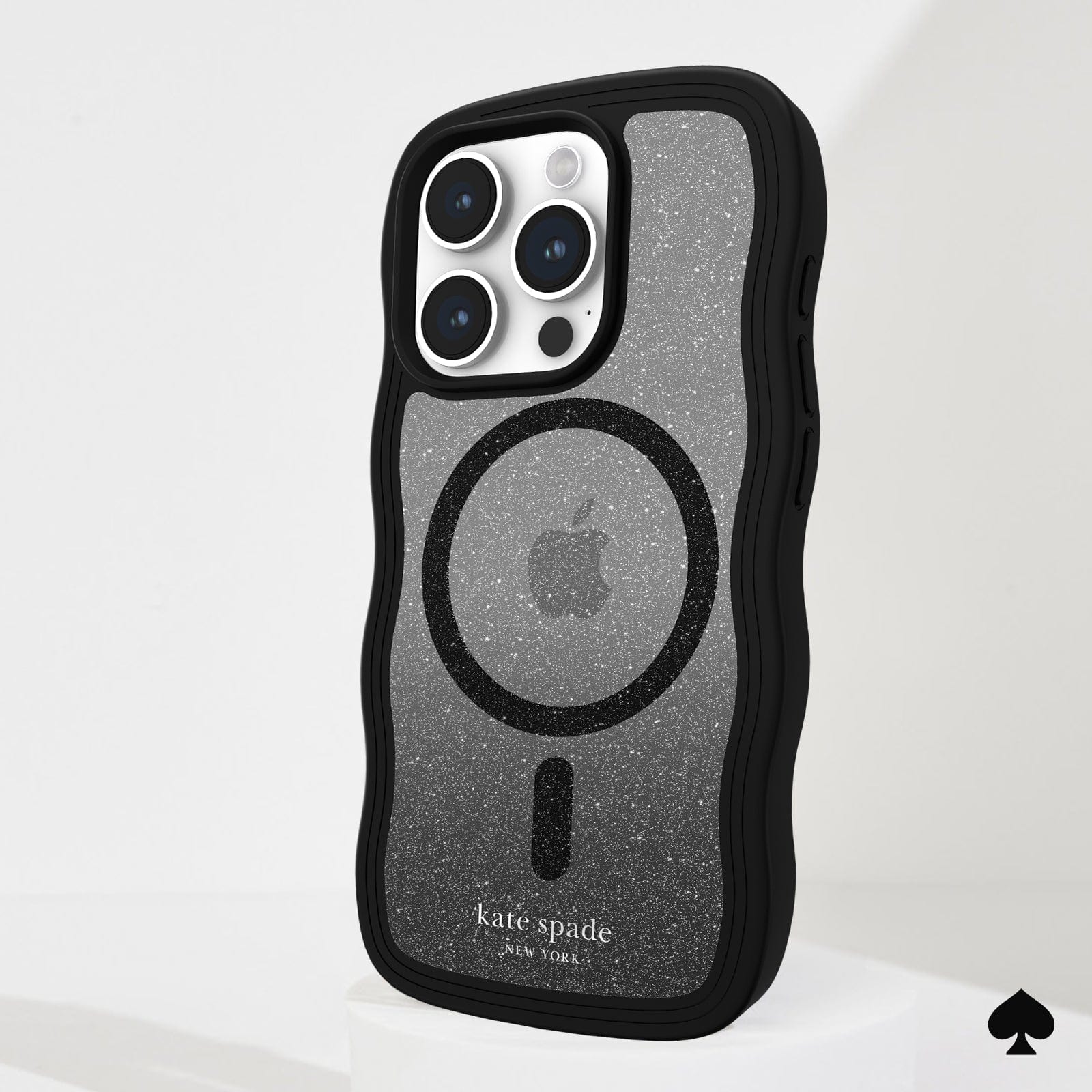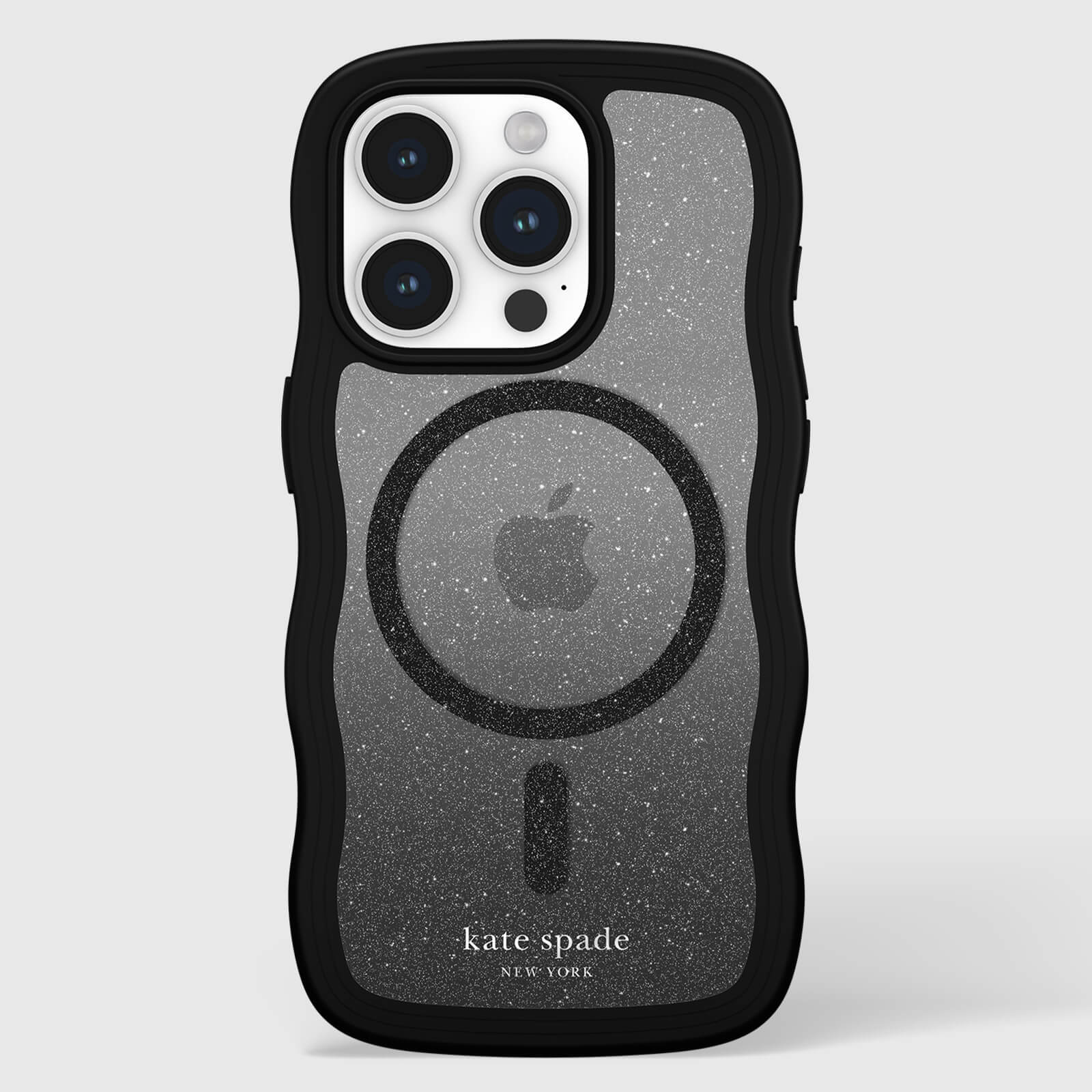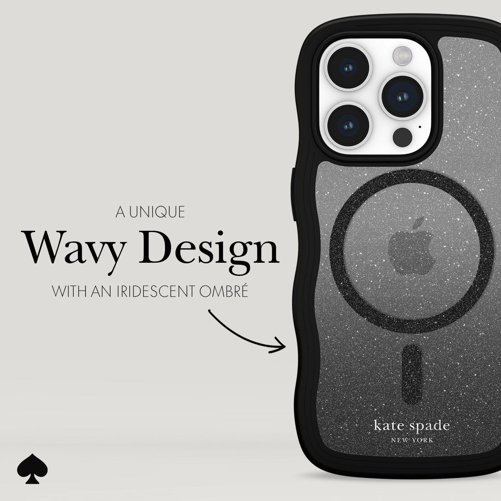 The kate spade new york Wavy MagSafe Phone Case adds a fun touch to your mirror selfies with a unique wavy design and black glitter ombré! This phone case is made to keep up with your daily to-do list thanks to a 10-foot drop protection, while built-in magnets let you wirelessly charge and accessorize in a snap.