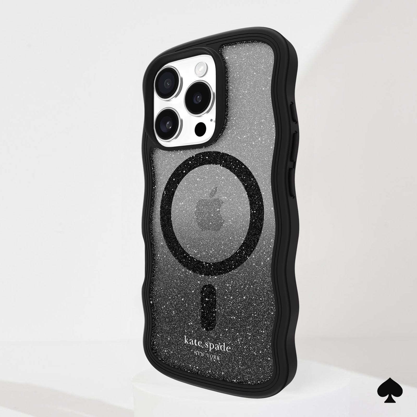 The kate spade new york Wavy MagSafe Phone Case adds a fun touch to your mirror selfies with a unique wavy design and black glitter ombré! This phone case is made to keep up with your daily to-do list thanks to 12-foot drop protection, while built-in magnets let you wirelessly charge and accessorize in a snap.