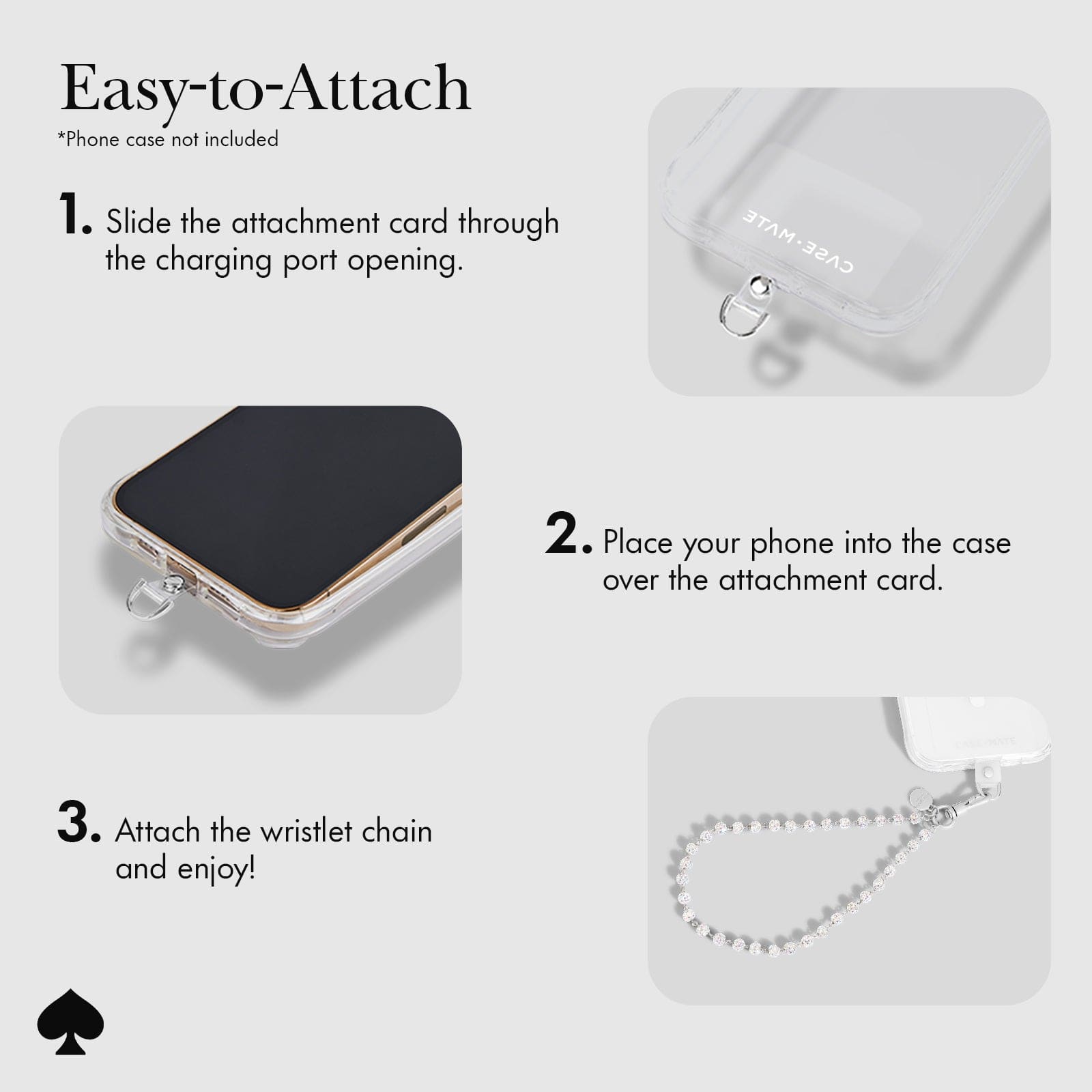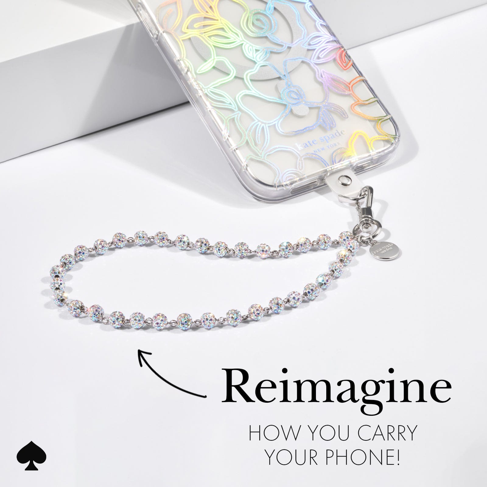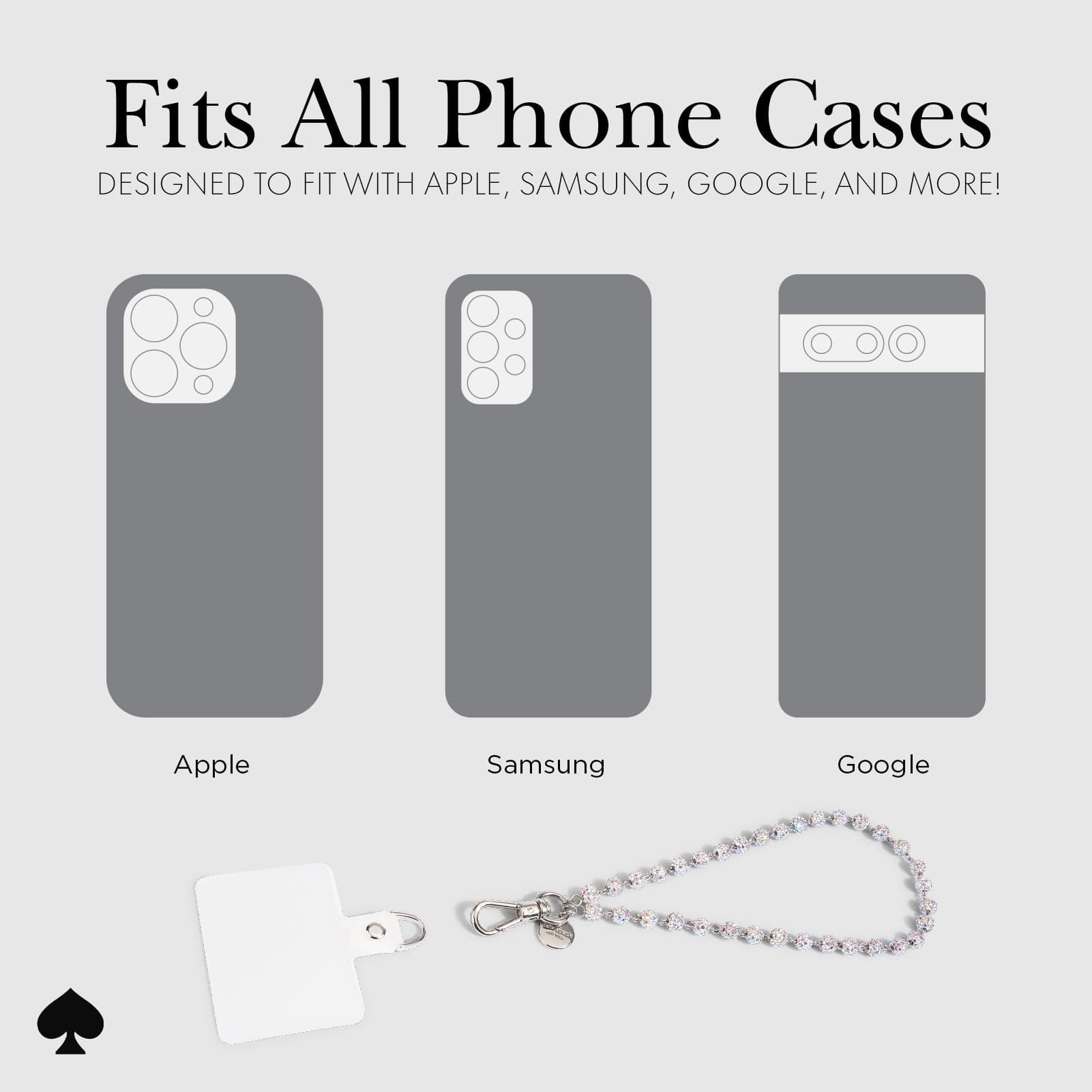 Carry your phone like a clutch and go hands-free for a night on the town or when out running errands with the Kate Spade Phone Charm! This Phone Charm is designed to fit with all phone cases and allows you to charge your phone without removing it.
