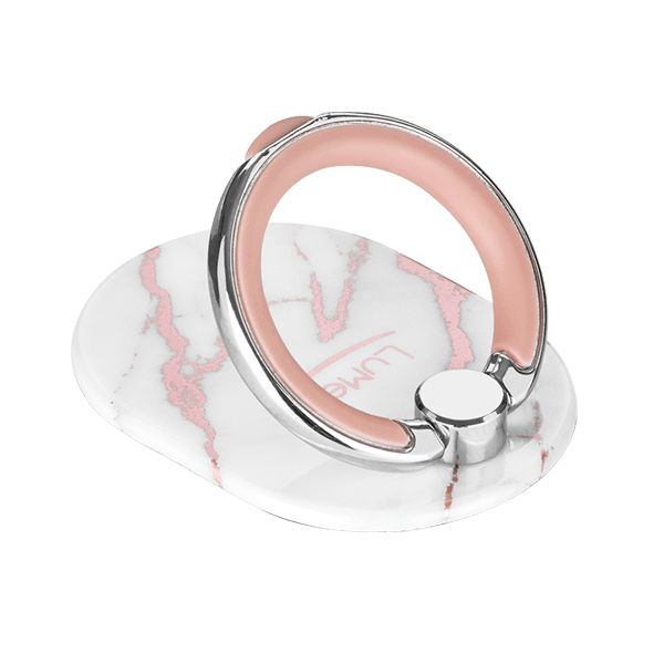 LuMee Rose Metallic White Marble Ring - Phone Grip
