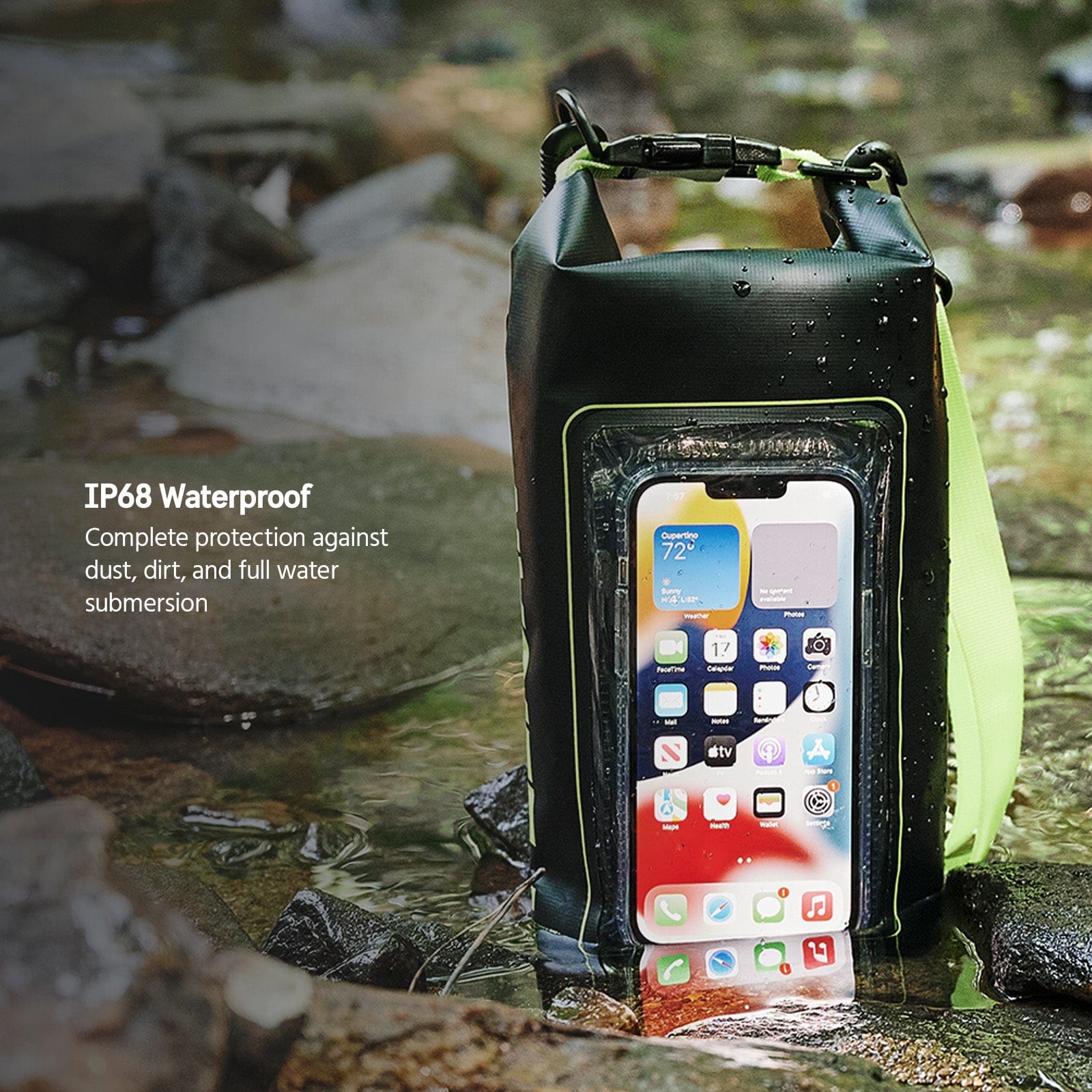 Keep your essentials organized and protected from the elements with the Marine Waterproof Dry Bag. Great for hiking, boating, fishing, rafting, water parks, the beach and more- this is a must-have for your next adventure. Waterproof and crafted with ultra durable materials and an integrated clear phone pocket. Press to seal in your phone, but stay feeling connected and protected through the outer touch screen window.