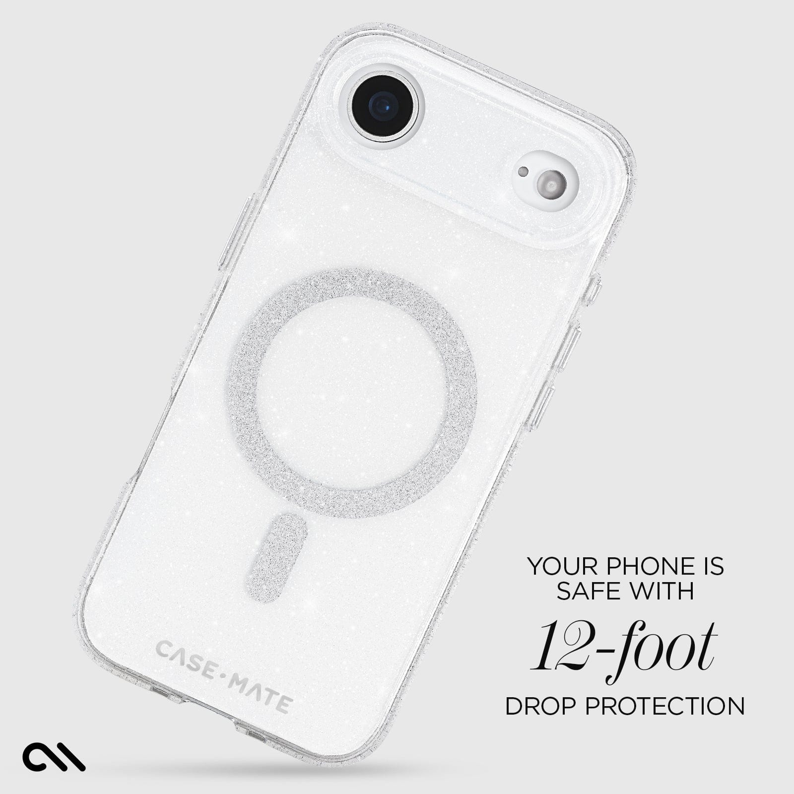 Let your phone shine with the Sheer Twinkle Silver MagSafe Phone Case for the iPhone Air! The silver sparkles in this case catch the light for a perfect shimmering effect, while strong built-in magnets allow for easy MagSafe accessorizing and charging. We know how much you love your phone, so feel confident knowing it’s safe with 12-foot drop protection.