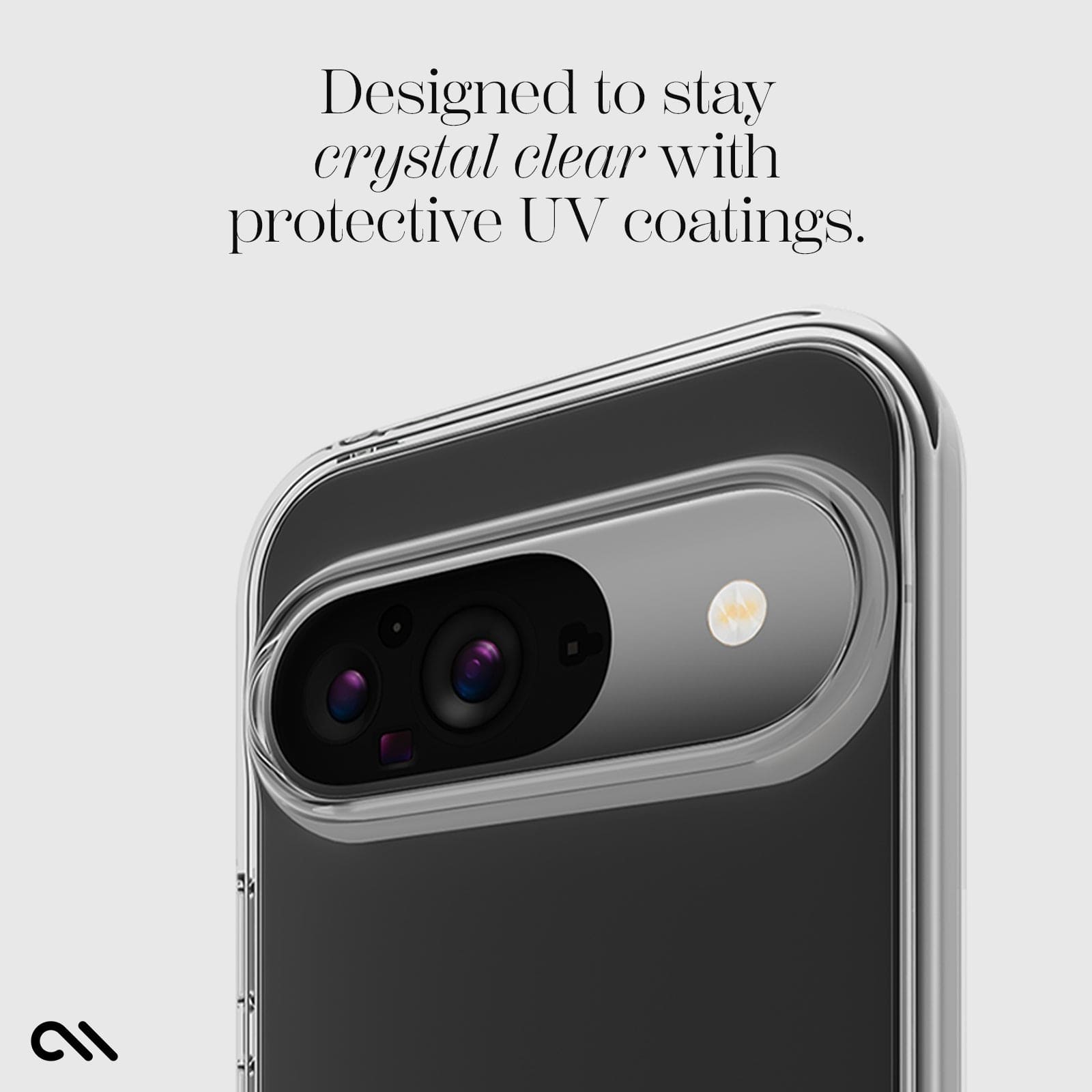 The Signature Clear Phone Case is designed in collaboration with Google for the Pixel 9 / 9 Pro. Featuring a sleek, device-hugging silhouette, this case is made to protect your phone against drops and scratches with antimicrobial and anti-scratch coatings. We know how much you love your phone, so feel confident knowing it’s safe with 12-foot drop protection.
