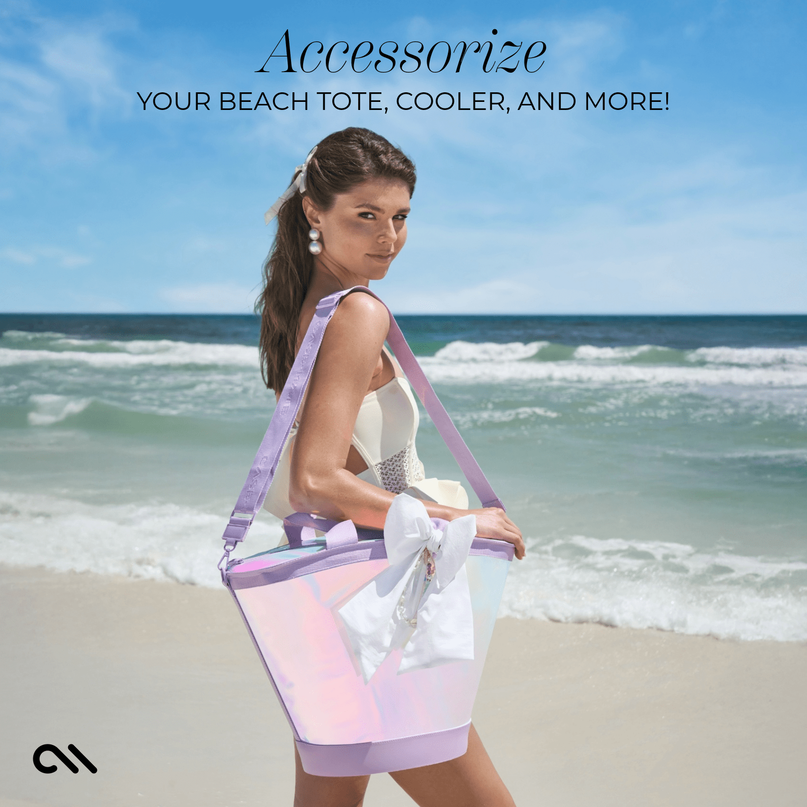 Accessorize your beach tote, cooler, and more with a bag charm that makes a statement! This oversized bow charm features a large clip ring that attaches easily to any bag or tote. Made with waterproof fabric and tarnish-free hardware, it’s built to handle pool days, beach trips, and everything in between.